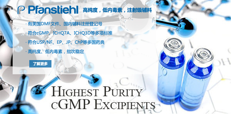 “熱烈祝賀Pfanstiehl的注射級甘氨酸Glycine(G-140)喜獲CDE登記號F20250000403, 這是Pfanstiehl產品獲得的第18個CDE登記號!”甘氨酸在醫藥輔料制劑中應用廣泛,, 可作為緩沖劑,增溶劑,穩定劑等,具有諸多優勢。Pfanstiehl秉承一貫高品質理念,為滿足全球生物制藥行業對于高品質甘氨酸的需求,隆重推出的注射級甘氨酸Glycine (G-140), 具有超高純度,超低內毒素,超低金屬殘留的特點,單獨檢測29種金屬離子,并且新增DNA,RNA,DNA酶,RNA酶和脂肪酶,亞硝酸鹽等多項質量指標的檢測,符合多國藥典規定(USP, EP, BP, JPE, ChP),可用于生物治療性藥物和疫苗的生產。產品信息:· 產品名稱:Glycine, High Purity, Low Endotoxin, Low Metals, USP, EP, BP, JPE, ChP (G-140)· 中文名稱:甘氨酸· 分子式:C2H5NO2· 分子量:75.07 g / mol· CAS號:56-40-6· 產品貨號:G-140產品特點: · 超高純度,超低內毒素,超低微生物含量,超低金屬雜質殘留· 質量指標新增DNA,RNA,DNA酶,RNA酶,脂肪酶和亞硝酸鹽檢測· 符合多國藥典:USP, EP, BP, JPE, ChP· 符合ICH Q3D標準· 符合GMP標準· 已獲DMF和CDE登記號 產品應用:· 緩沖劑· 穩定劑· 增溶劑如果您對Pfanstiehl注射級別Glycine G-140感興趣,歡迎聯系Pfanstiehl 中國區代理商北京西美杰科技有限公司獲得如下詳細的產品概況說明文件和測試樣品。Pfanstiehl Inc.最新產品系列如下,歡迎聯系北京西美杰科技有限公司獲取100g裝免費樣品。北京西美杰科技有限公司為Pfanstiehl中國代理,為客戶提供完善的技術支持與售后服務。歡迎撥打西美杰客服電話400-050-4006或者登陸網站www_xmjsci_com.54jq.com了解更多信息。 更多>
